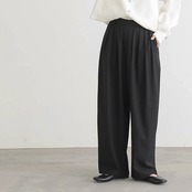1164 タック ワイド パンツ ストレート きれいめ オフィス 涼しい ブラック