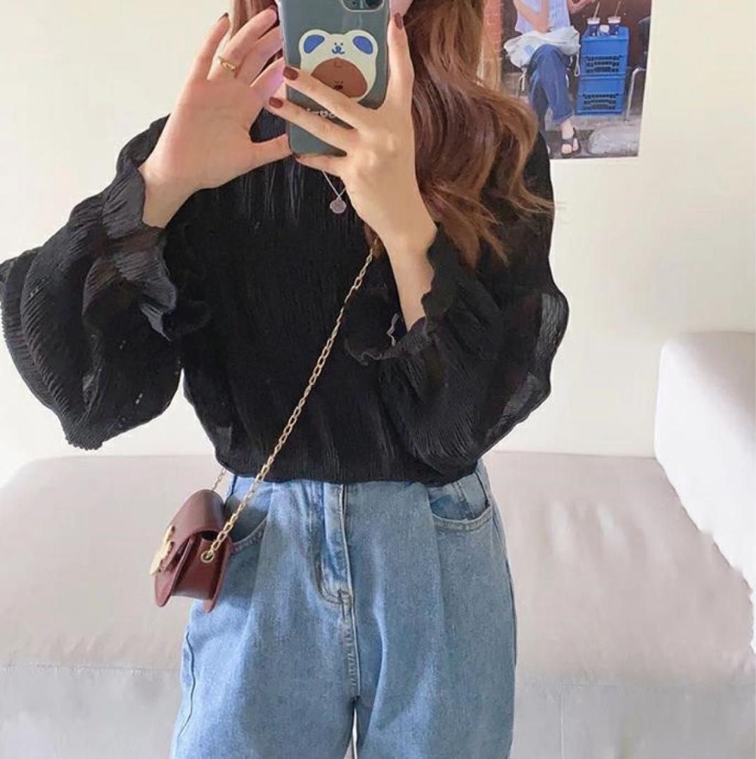 【上品な透け感が魅力】シフォンシャーリングブラウス