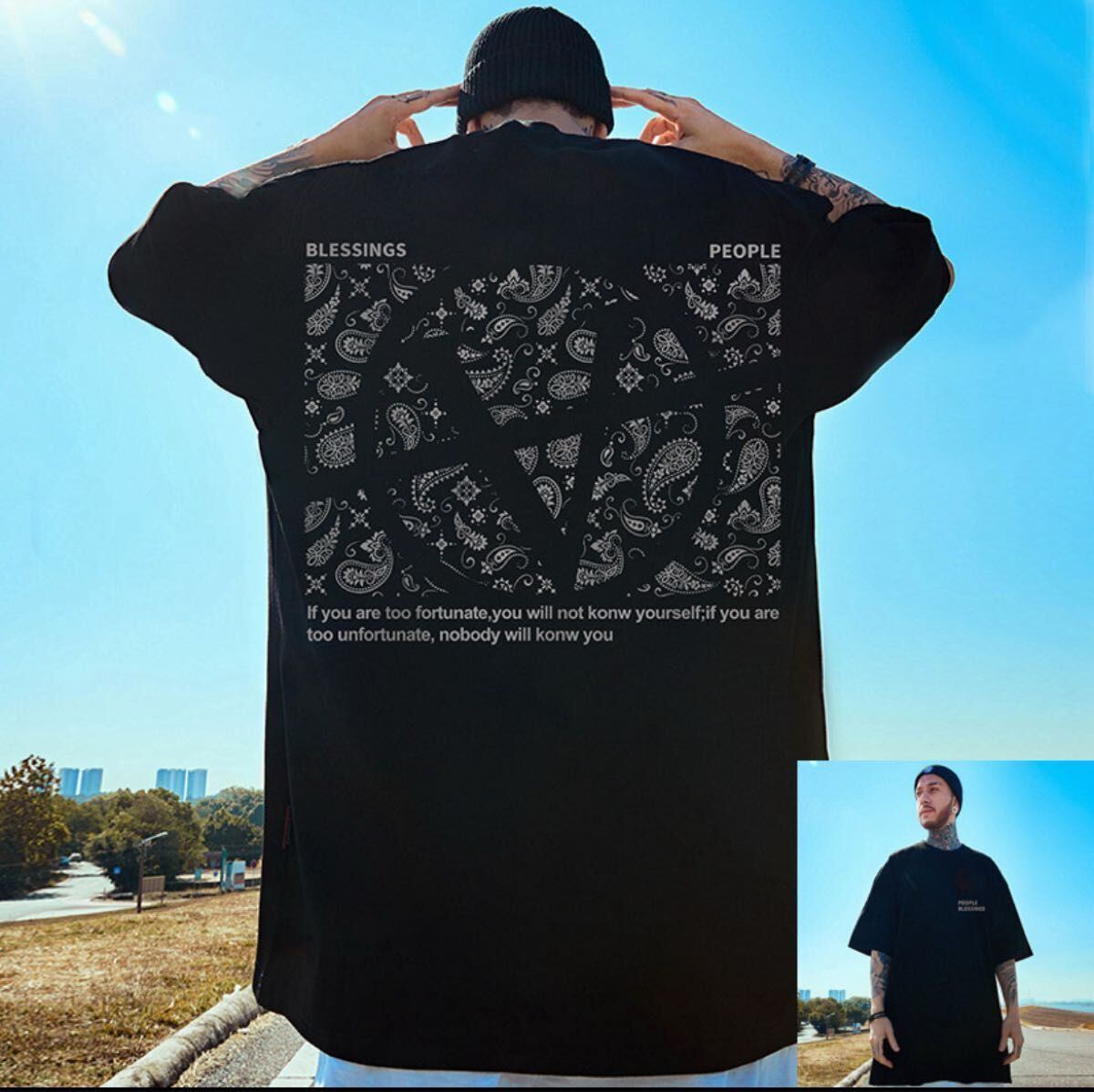 1215 メンズ Tシャツ ペイズリー プリント ゆったり ワイド身幅