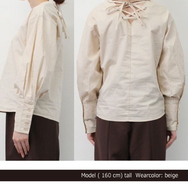 【送料当店負担】 レディース 綿ブロード バックレースアップ ブラウス