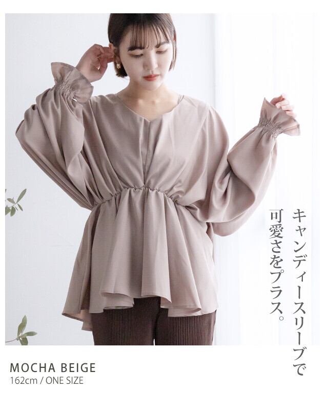[201204]トップス ブラウス ペプラム チュニック 長袖 キャンディースリーブ キャンディ袖 フレア
