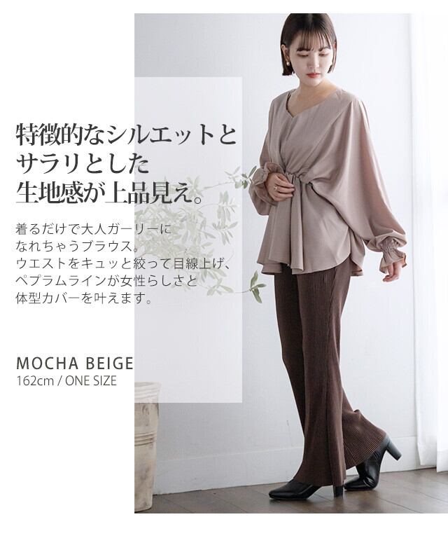 ペプラムラインが女性らしさと体型カバーを叶えます。