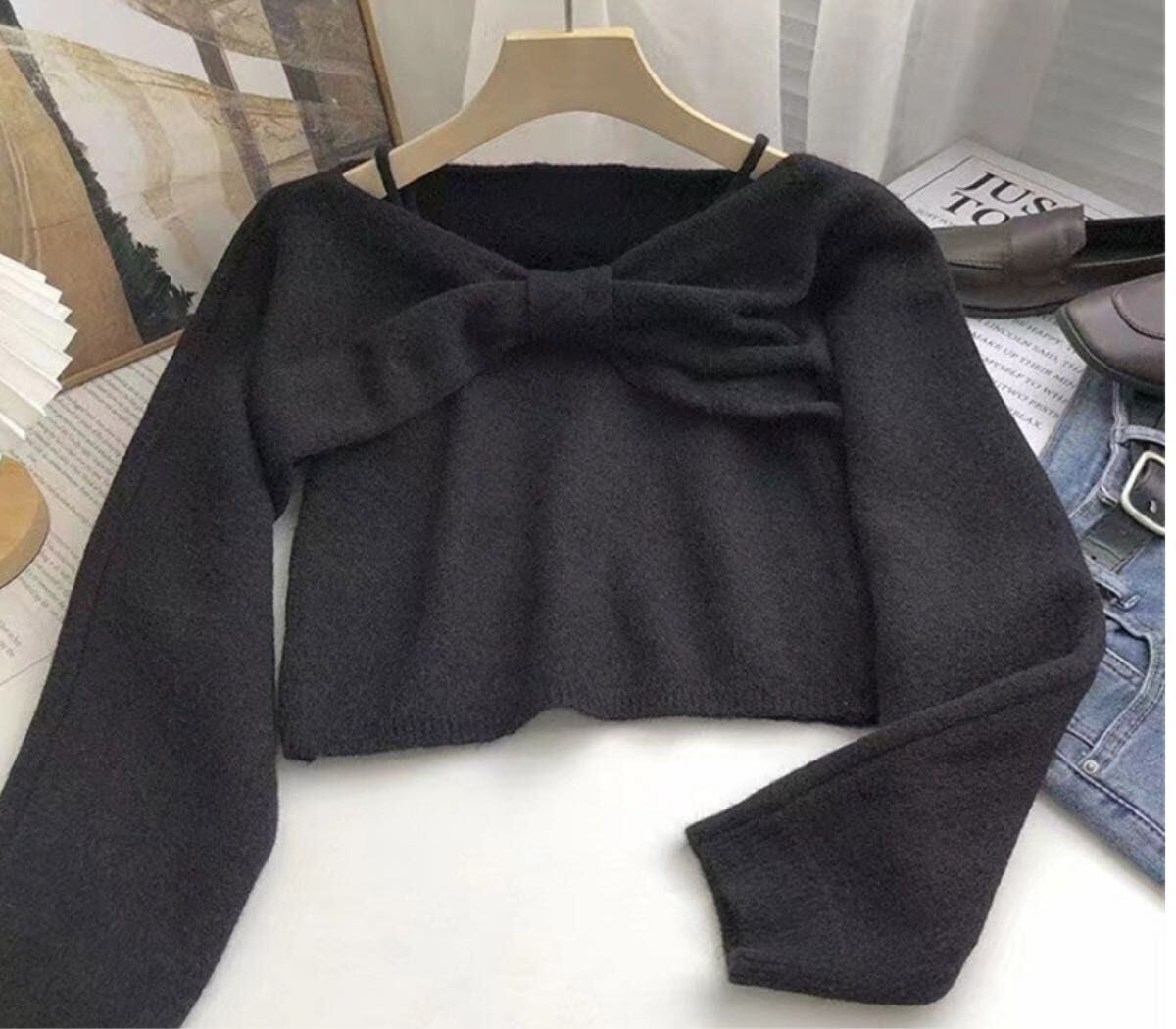 959 セーター ニット キャミ付き 2点セット リボン 大人ガーリー キュート カジュアル ブラック
